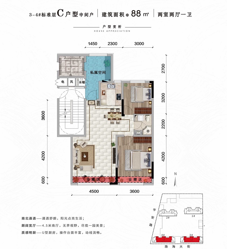 中天御品項(xiàng)目位于營(yíng)口市渤海大街與平安路交會(huì)處,地處西市區(qū)核心位置,營(yíng)口主城區(qū)的交通要道,地理位置十分優(yōu)越。行政配套遍布項(xiàng)目周邊,商業(yè)配套齊全滿足您日常購(gòu)物所需。 項(xiàng)目占地面積1.6萬(wàn)㎡,建筑面積3.7萬(wàn) ㎡,整體由4棟17層新中式雅居小高層組成,配有商鋪及車(chē)庫(kù)/車(chē)位,完全人車(chē)分流設(shè)計(jì)。 戶(hù)型種類(lèi)齊全,面積區(qū)間從88平到118平,從兩室兩廳一衛(wèi)到三室兩廳兩衛(wèi)。全部戶(hù)型均為南北通透的五明戶(hù)型設(shè)計(jì)。