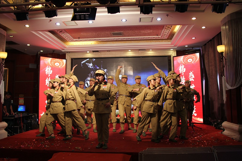 集團總部機關(guān)代表隊當《沒有共產(chǎn)黨就沒有新中國》的旋律響起,當巨型的國旗升起,贏得了熱情的掌聲。一首《眾人劃槳開大船》,唱出了特有的氣勢。特別是于寶權(quán)董事長和于洪波總經(jīng)理登臺演唱,把演唱推向了高潮。萬豪酒店代表隊表演的《紅色娘子軍》,在馮國總經(jīng)理的指揮下,非常有氣勢,具有很高的感染力。