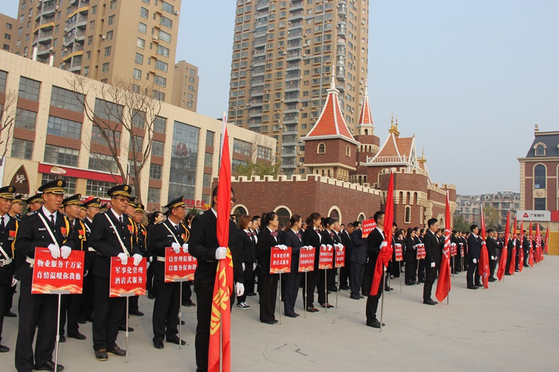 本次活動(dòng)共由11個(gè)方隊(duì)組成。第一方隊(duì)為保安形象方隊(duì),物業(yè)公司王化啟總經(jīng)理親任隊(duì)長(zhǎng),他們身著新式的保安服裝,隊(duì)伍非常整齊。