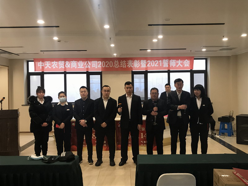 1月28日下午,農貿和商業(yè)公司召開2020年度總結表彰大會。商業(yè)公司副總經(jīng)理田彧做商業(yè)公司2020年度工作匯報。表彰2020年度優(yōu)秀員工農貿公司和商業(yè)公司團隊上臺,對新年度指標任務開展誓師。孫晶總經(jīng)理分別與各位經(jīng)理簽署責任狀,并發(fā)表講話。通過此次會議,使農貿公司和商業(yè)公司的員工進一步明確了2021年度工作目標,提升了員工凝聚力,為更好的完成年度任務奠定了基礎。