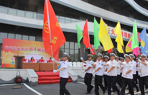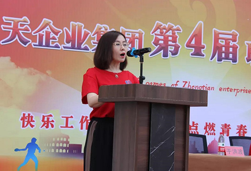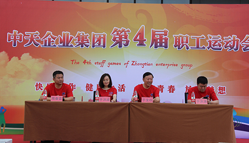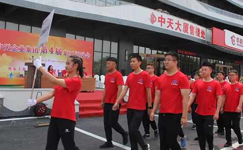 下午一點(diǎn)整,伴隨著一片鑼鼓聲,運(yùn)動(dòng)員入場(chǎng),接受集團(tuán)董事長(zhǎng)于寶權(quán)、總裁于洪波、執(zhí)行總裁于洪濤、副總裁周春雷以及各分子公司總經(jīng)理的檢閱,只見(jiàn)他們邁著整齊的步伐喊著響亮的口號(hào),展現(xiàn)出中天職工昂揚(yáng)向上的精神風(fēng)貌。隨后于洪波總裁致辭。舉辦職工運(yùn)動(dòng)會(huì),是中天集團(tuán)企業(yè)文化的一個(gè)重要傳承,目的是弘揚(yáng)“全民健身”精神,豐富企業(yè)文化內(nèi)涵,增強(qiáng)員工體質(zhì),提高企業(yè)凝聚力和向心力,傳頌和發(fā)揚(yáng)團(tuán)結(jié)協(xié)作精神和爭(zhēng)當(dāng)?shù)谝坏钠床庵荆玫卣故緢F(tuán)隊(duì)精神和凝聚力量。