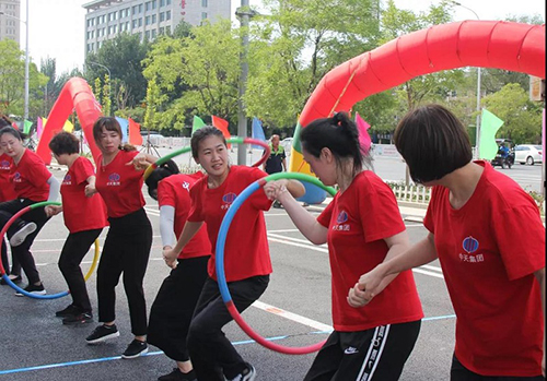 “激情傳遞”每隊(duì)10人。比賽開(kāi)始前,所有隊(duì)員手拉手平舉排成一隊(duì),從一端一個(gè)人的手中將第一個(gè)呼啦圈進(jìn)行依次傳遞,直至第5個(gè)呼啦圈傳遞到隊(duì)伍的最后一個(gè)人手中。本項(xiàng)目考驗(yàn)的是團(tuán)員之間團(tuán)結(jié)協(xié)作的能力,大連公司以絕對(duì)的優(yōu)勢(shì)取得第一名,遼陽(yáng)公司和集團(tuán)機(jī)關(guān)分列二、三名。