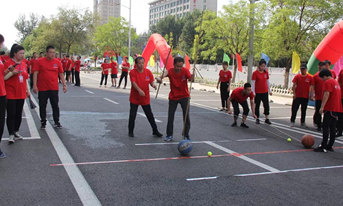 “趕豬跑”每隊(duì)6人,在跑道內(nèi)第1名隊(duì)員用竹竿同時(shí)趕籃球和網(wǎng)球至第2名隊(duì)員定點(diǎn)位置,依次傳遞至最后終點(diǎn)。球體不允許超出賽道,超賽道的從階段內(nèi)定點(diǎn)位置重新趕球。此項(xiàng)比賽,如何能控制好球的前進(jìn)方向和速度是關(guān)鍵,過(guò)于追求速度勢(shì)必會(huì)導(dǎo)致重新開(kāi)始。通過(guò)激烈的比拼,最終物業(yè)公司獲得了此項(xiàng)比賽的第一,大連公司和酒店公司分獲二、三名。