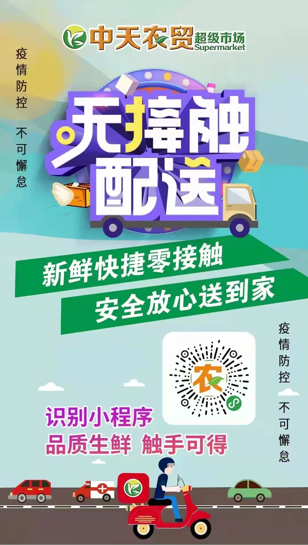 越是風(fēng)疾雨驟,越考驗責(zé)任;越是關(guān)鍵時刻,越見證擔(dān)當(dāng)。在政府相關(guān)部門的大力協(xié)助下,在集團各級領(lǐng)導(dǎo)、同事和兄弟公司的幫助下,在顧客的理解和支持下,中天農(nóng)貿(mào)人始終奔走在抗疫保供、服務(wù)民生的第一線,用他們微薄的力量,毅然承擔(dān)著保民生保供應(yīng)的社會責(zé)任和使命,同心協(xié)力,共克時艱,中天集團與家鄉(xiāng)人民同舟共濟,共待春來!