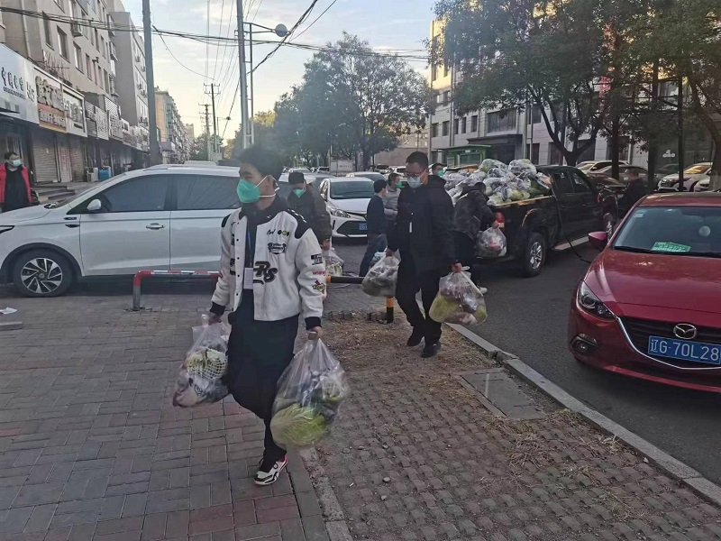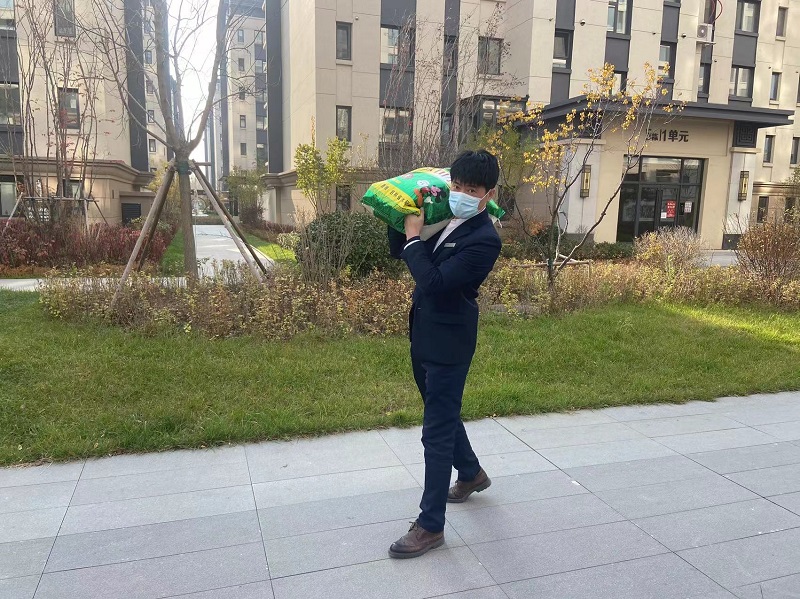 盤錦及撫順物業(yè)公司服務(wù)的幾個項目,都是新交房小區(qū),面對入住業(yè)主較少,裝修工人滯留,物業(yè)積極聯(lián)系社區(qū)做好封控人員的核酸檢測工作。由于人員緊缺,不少物業(yè)人員24小時堅守在項目,一人身兼數(shù)職,保安剛幫業(yè)主把物品送上樓,又要馬上幫助保潔人員對大堂進行消殺工作;保潔員除了園區(qū)衛(wèi)生清潔,樓道消殺,還要上門收垃圾;房管員受裝修完未入住業(yè)主委托上門澆花……一件件小事,卻大大的溫暖了業(yè)主,撫順中天首府的業(yè)主還專門在撫順交通廣播電臺上講述了中天物業(yè)的溫暖故事。為了讓業(yè)主安心居家,物業(yè)還采購蔬菜包、大米等物資免費為居家業(yè)主發(fā)放,同時為了減少聚集,物業(yè)工作人員挨家挨戶送到業(yè)主手中,讓防控有力度,抗疫有溫度。