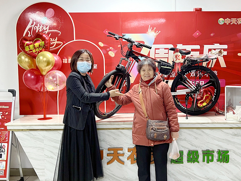 同時為感謝廣大顧客七年以來對中天農(nóng)貿(mào)的支持與厚愛,市場在慶典當(dāng)天投放了千枚鮮雞蛋,免費(fèi)領(lǐng),共慶生,傾情回饋七年的相伴,最后的重頭戲,是最令人期待的大抽獎環(huán)節(jié),本次慶典活動獎品除了微波爐、電烤箱、料理機(jī)、電熱鍋等小家電以外,還特別增設(shè)了特等獎——品牌變速山地車,面對豐厚的獎品,熱情的顧客們都已按捺不住激動的心情,迫不及待的想知道自己是不是幸運(yùn)兒,隨著主持人念出幸運(yùn)號碼,現(xiàn)場一片笑語歡聲,開獎結(jié)束后,農(nóng)商公司總經(jīng)理孫晶為中獎顧客頒獎并合影留念。