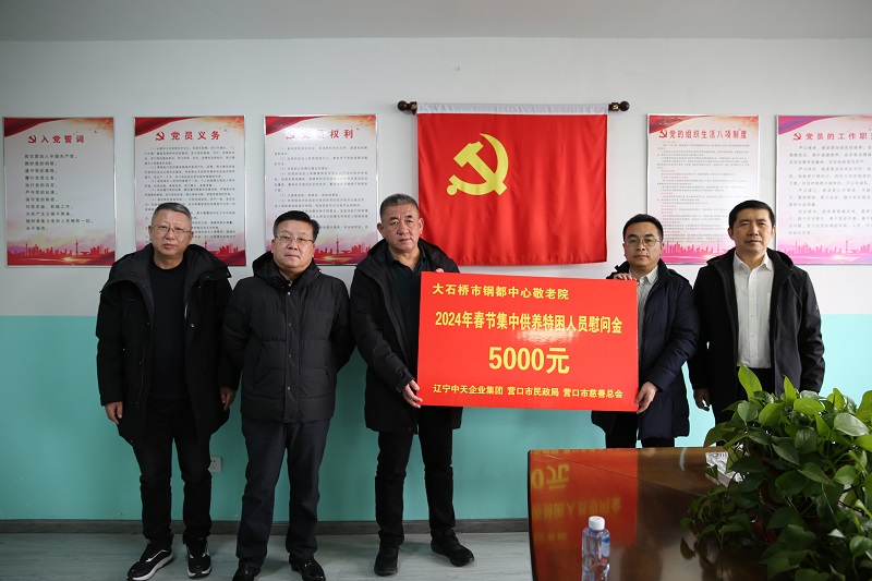 2024年1月30日,集團(tuán)行政人力資源總監(jiān)張瑞強(qiáng)隨營(yíng)口市慈善總會(huì)副會(huì)長(zhǎng)黃渤及營(yíng)口市民政局副局長(zhǎng)王貴鵬一行走訪(fǎng)慰問(wèn)大石橋市鋼都區(qū)域性中心敬老院、大石橋市湯池區(qū)域性中心敬老院,代表中天企業(yè)集團(tuán)向機(jī)構(gòu)負(fù)責(zé)人詢(xún)問(wèn)了機(jī)構(gòu)相關(guān)情況和目前面臨的困難,表態(tài)中天集團(tuán)將繼續(xù)關(guān)注困難群眾需求,以企業(yè)之力建立好關(guān)愛(ài)服務(wù)的長(zhǎng)效機(jī)制。此前集團(tuán)向營(yíng)口市慈善總會(huì)捐款5萬(wàn)元,定向用于大石橋市鋼都區(qū)域性中心敬老院等三個(gè)單位、蓋州市九寨中心敬老院等九個(gè)單位集中供養(yǎng)特困人員,希望幫助他們歡度一個(gè)快樂(lè)祥和的春節(jié),用實(shí)際行動(dòng)詮釋了民營(yíng)企業(yè)的責(zé)任與擔(dān)當(dāng)。
