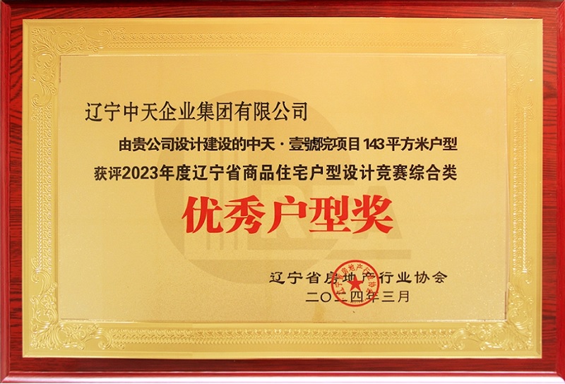4月18日,在遼寧省房地產(chǎn)行業(yè)協(xié)會(huì)第六屆七次理事會(huì)上,由我公司自主設(shè)計(jì)的營(yíng)口中天·壹號(hào)院項(xiàng)目143平戶型獲評(píng)2023年度遼寧省商品住宅戶型設(shè)計(jì)競(jìng)賽綜合類優(yōu)秀戶型獎(jiǎng)。