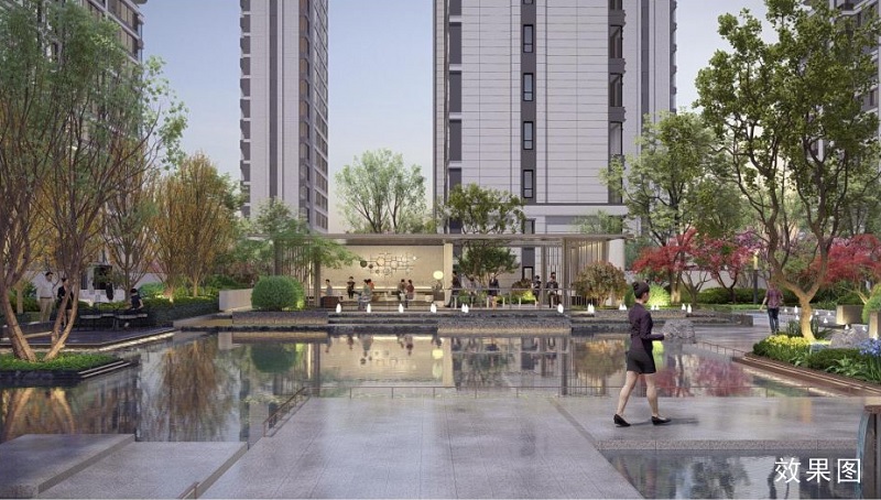 景觀亮點主要有“五大體驗觸點”,第一,主入口大門,打造“洗塵迎賓”的禮儀性大門景觀形象;第二,步入式大堂,打造歸家進出的尊貴感體驗;第三,下沉庭院,以“清漪飛響”打造步入畫卷、聽泉觀山的特色景觀體驗;第四,在中央景觀節(jié)點,以“天光云影,如意善水”打造室外會客廳及中央水景,展示未來生活場景;第五,樣板間帶看路線,以“棣堂一夢,觀嶼聽云軒”為主題,在華麗的入戶大堂及出入口兩側,以特色植物組團營造親切的歸家體驗。