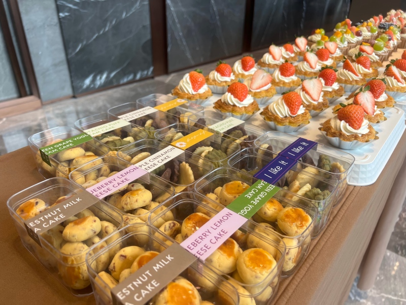 作為區(qū)域內(nèi)的地標建筑,中天云璟此次活動的籌備,精準踩中了職場人的“年末節(jié)奏”:物業(yè)團隊提前準備了不易影響辦公的輕食甜品——剛出爐的曲奇裹著黃油香,紙杯蛋糕點綴著新鮮果粒;奶茶則調(diào)試至“適口不燙”的溫度,搭配便攜包裝,方便員工帶回工位享用?;顒蝇F(xiàn)場,工作人員身著整潔工裝、佩戴無菌手套,將甜品逐一分裝——金黃的曲奇在托盤里碼得整齊,與寫字樓現(xiàn)代簡約的大堂風格相映,既保持商務場景的整潔質(zhì)感,又藏著細節(jié)里的溫柔。