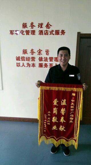 業(yè)主的家人回來后買來水果和煙想送給保安以示感謝,但被保安隊長李世剛婉拒。未曾想幾天后趙純超親自給物業(yè)送來一面錦旗,上面寫著“愛崗敬業(yè),溫馨奉獻”八個大字。趙先生說:“事情雖小,但讓我心里覺得很暖,感謝你們物業(yè)保安人員的幫助、熱心和大度。既然你們把我們業(yè)主當朋友,我也一定把你們當成一家人。”看到業(yè)主終于和物業(yè)敞開心扉,所有的付出得到認可,我們感到非常幸福。