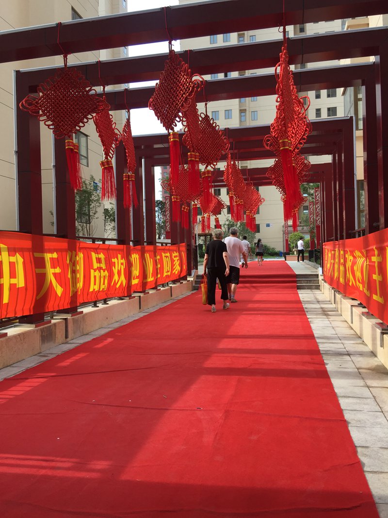交房前一天,為了使業(yè)主能夠在最短的時間內(nèi)完成看房前的一系列程序,工作人員提前定崗定位進(jìn)行演練并為每一位業(yè)主準(zhǔn)備好了各種簽約及領(lǐng)用物品的資料。除此之外,小區(qū)入口處的“中天御品歡迎業(yè)主回家”“中天集團(tuán)恭賀業(yè)主喬遷之喜”等的紅色拱門和條幅、通往小區(qū)的走廊天橋上掛滿了充滿節(jié)日氣氛的中國結(jié)、長廊和入口處鋪滿的紅地毯、寬敞明亮的入戶大堂、大堂里擺放的穿衣鏡和充滿歐式風(fēng)情的裝飾掛畫,無一不彰顯出中天集團(tuán)獨(dú)有的品牌魅力特色,給業(yè)主們一個獨(dú)一無二的家,讓業(yè)主真正感受到回家的溫馨,業(yè)主們紛紛表示“買房買中天買對了”“中天的房子就是讓人放心和安心”,和諧、快樂洋溢在小區(qū)的各個角落……